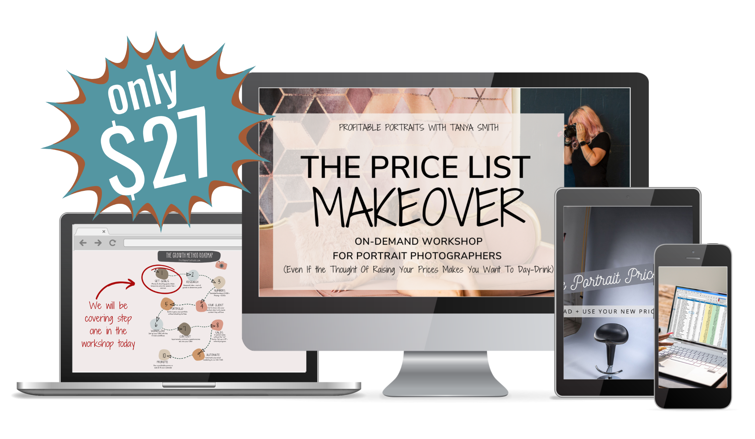 The Pricing Makeover Bundle will help you stop second-guessing your prices and build a price list that matches your talent, supports your goals, and makes your portrait photography business profitable.